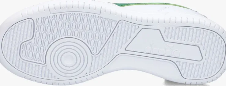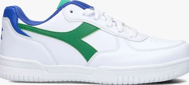 Het Italiaanse merk DIADORAproduceert al decennialang kwalitatieve sportschoenen en focust zich sinds de laatste 10 jaar ook op de fashionmarkt. De modellen hebben een vernieuwde look met behoud van het uitstekende comfort en de perfecte pasvormen. Met deze witte, lage sneaker RAPTOR LOW GS en groene accenten maak je zeker indruk! Hij is uitgevoerd in soepel leatherlook met perforaties op de neus die samen met het binnenwerk van textiel zorgt voor een ademende en vocht opnemende werking. Op de zijkant is het herkenbare, groene logo te vinden en de tong heeft een mooi, textiel merklabel. De zoolrand met fijne structuur heeft een reliëf merkopdruk en het profiel in de loopzool zorgt voor een goede grip en stabiliteit. Wij vinden het de meest comfortabele retro sneaker voor een stoere look!