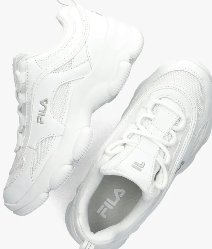 De STRADA DREAMSTER lage sneakers van FILA zijn perfect voor meisjes en jongens die op zoek zijn naar stijlvolle witte schoenen. Met deze trendy sneakers kun je moeiteloos de hele dag doorbrengen in comfort en stijl. Dit model is gemaakt van leatherlook en heeft details van wit mesh op de voorvoet, zijkanten en tong. Opvallende details zijn de wit met grijze aantreklus, de gekruiste veters, het welbekende merklogo aan de zijkant en het merkreliëf op de tong. De binnenvoering is gemaakt van textiel en heeft een uitneembaar voetbed, door de gevoerde enkelkraag biedt de schoen extra comfort. De chuncky zool met gripvast profiel ziet er niet alleen tof uit maar creëert ook grip bij iedere stap. Of je nu naar school gaat of een dagje uit met vrienden, deze sneakers zijn de ideale keuze.