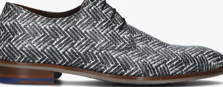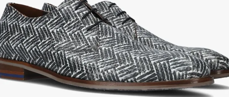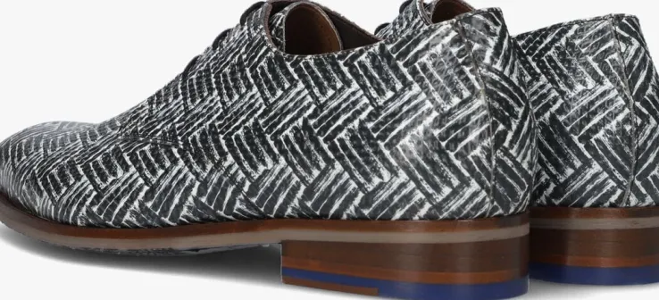 Val op met deze eyecatchers SFM-30149 van het merk Floris van Bommel! Dit zwart met witte model is uitgevoerd in leer en heeft een gevlochten patroon. Leuke details zijn ook de ronde veters en de blauwe inzet in de hak die dit design compleet maken. Het binnenwerk is van leer, heeft een suède hielstuk en het vaste, leren voetbed heeft een comfortabele demping. De loopzool met onderwaterprint is afgewerkt met een gripvast profiel. Ga voor een unieke look met deze opvallende stappers!