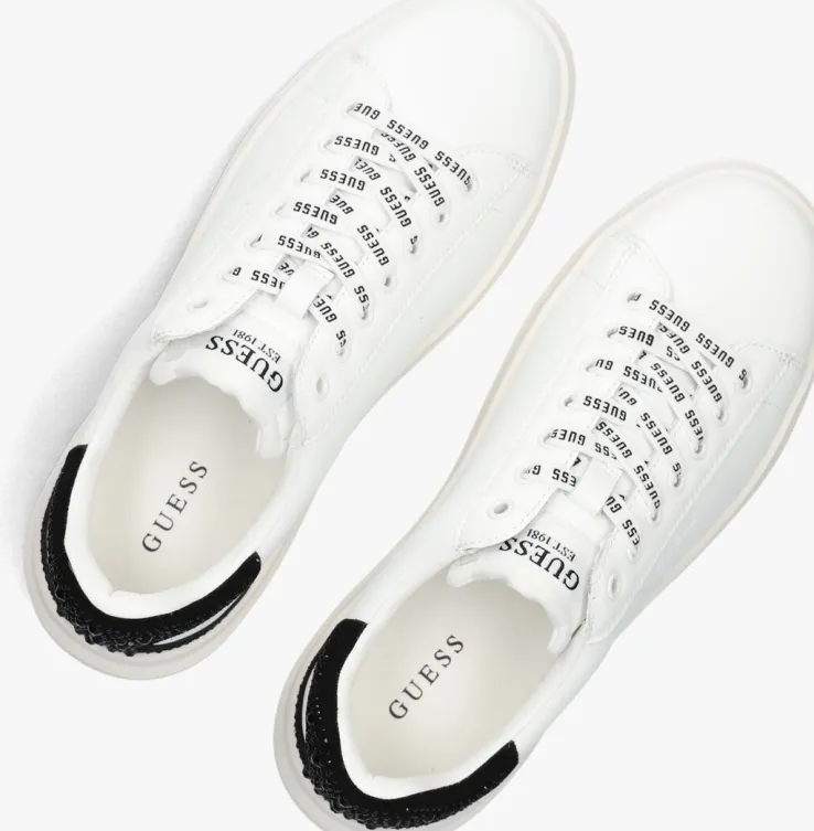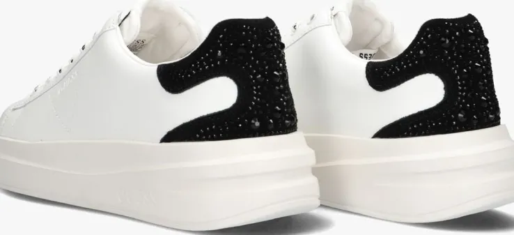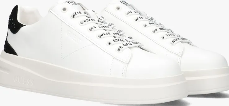 Maak kennis met de ELBINA lage sneakers van GUESS. Deze witte pareltjes zijn perfect voor dames die stijl en comfort willen combineren. Gemaakt van hoogwaardig leer aan de buitenkant en een mix van leer, textiel en leatherlook aan de binnenkant. Opvallend is het suède hielstuk met strass-steentjes en de logo’s op de veters. De rubberen zool biedt grip en duurzaamheid. Draag ze tijdens een ontspannen stadswandeling of een dagje shoppen. Combineer de ELBINA sneakers met een casual jeans en een luchtige blouse voor een moeiteloze, trendy look. Ook ideaal onder een zomerse jurk voor een sportieve twist.