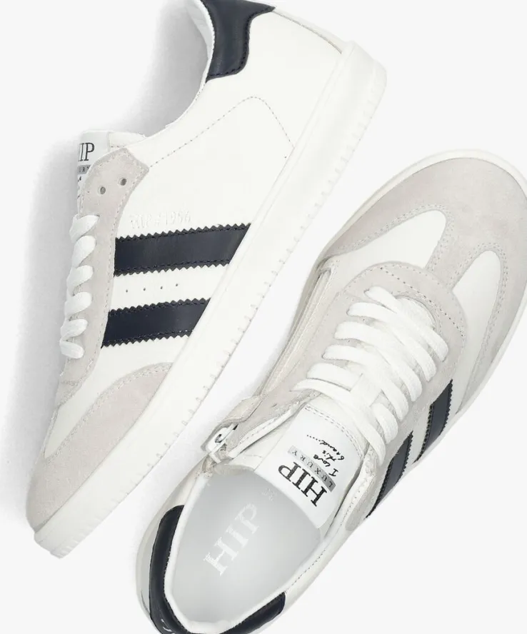 Met de HIP H1511 lage sneakers in de kleur wit ben jij helemaal on-trend! Deze trendy schoenen zijn perfect voor meiden die houden van comfort en stijl. De sneakers hebben leuke grijze suède panelen en op de tong en hiel merkreliëf. De binnenkant is van heerlijk zacht leer met een uitneembaar voetbed. De witte rubberen zool geeft je grip en comfort tijdens je dagelijkse activiteiten. Draag ze naar school of tijdens een dagje shoppen in de stad. Combineer de sneakers met een stoere jeans en een basic t-shirt voor een casual look, of met een leuk jurkje voor een meer girly uitstraling. Met deze sneakers maak jij gegarandeerd een fashion statement!