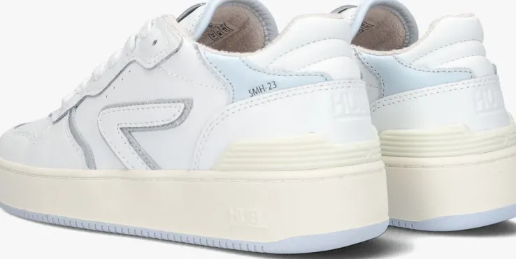 De SMASHsneakeruit de collectie van het merk HUB isop basketball-schoenen geïnspireerd en heeft een uniekontwerp en een hoog comfort. Deze witte sneaker is gemaakt van soepel leer met grijze accenten, perforaties op de neus en tong en een toffe retro look. De rubberen kuipzool is niet alleen heel flexibel maar ook ultralicht van gewicht envoorzien van een reliëf merkopdruk. Uniek details zijn de merkopdrukken op de tong en hiel, de verstevigende hielstabilisator en het welbekende logo op de zijkant van de sneaker. Het binnenwerk is van vochtabsorberend badstof en het uitneembare voetbed met gelvulling zorgt gegarandeerd voor het gevoel dat je op kussentjes loopt. Daarnaast heeft het voetbed het zogenaamde Air Flow-ventilatiesysteem zodat jouw voeten altijd droog en fris blijven. En uiteraard zorgt het profiel in de blauwe zool voor een uitstekende grip. Wordt dit jouw nieuwe favoriete sneaker?