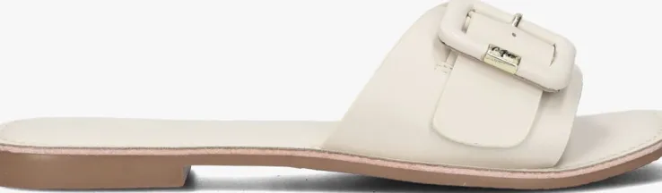 Ga voor comfortabele elegantie! Die twee kenmerken zijn namelijk uitstekend gecombineerd in deze leuke off-white slipper LOLLI uit de collectie van het merk MEXX.De slippers zijn gemaakt van off-white leer en heeft een band over de voorvoet met een gespsluiting en een goudkleurig merkembleem. De voering is ook gemaakt van off-white leer en onder de hiel zit een merkreliëf. De bruine zool is gemaakt van rubber en heeft een mini hakje van 1,5 centimeter. Trek ze aan onder je zwierige lange jurk voor een superfashionable look!