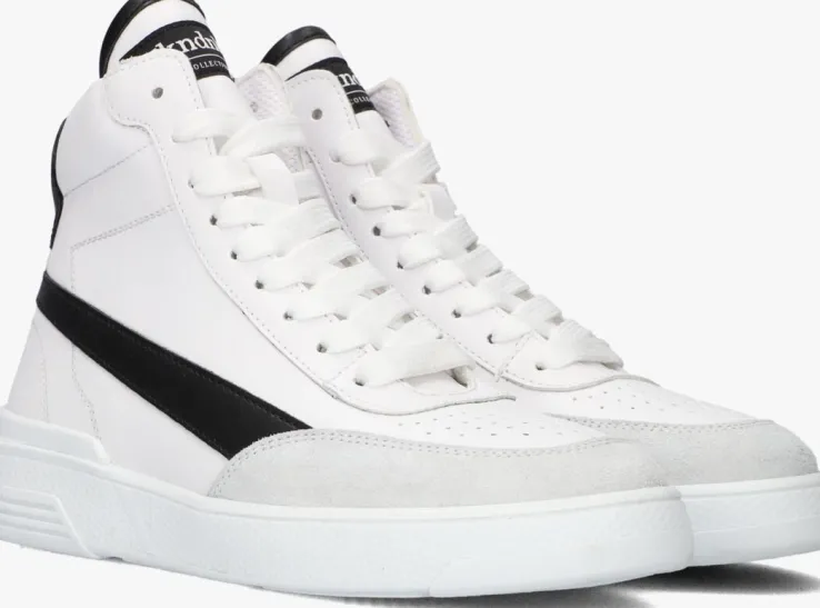 Deze hoge sneaker DASH SNEAKERS van NIK & NIK bestaat uit wit leer met een suède, grijze neusrand en zwarte accenten. Opvallend is de hielcap met tekst, het textiel merkembleem op de tong, de perforaties op de neus en de zwarte streep op de buitenzijde. De enkelkraag is gewatteerd voor een extra fijn comfort en de voering bestaat uit textiel. De rubberen zool met reliëf heeft een gripvast profiel en combineer dit model bij talloze outfits!