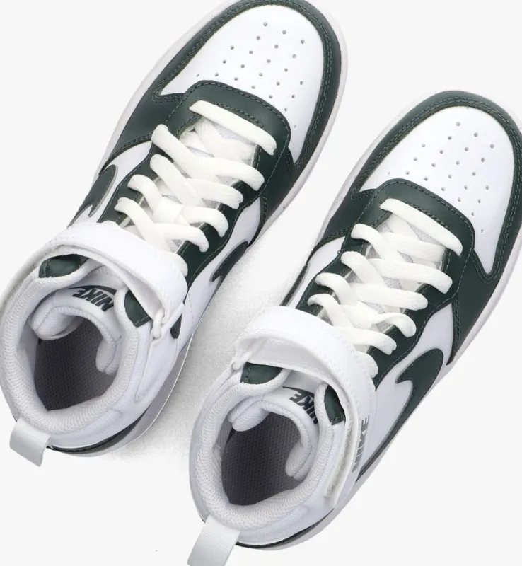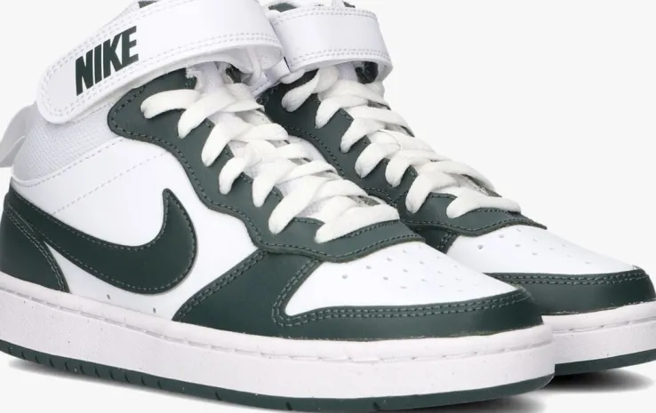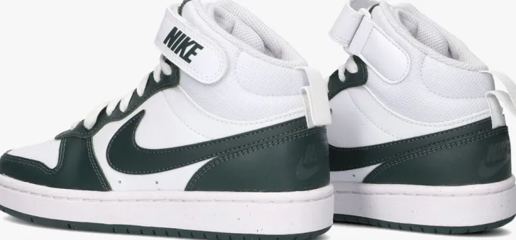 Stap in stijl met de COURT BOROUGH MID2 lage sneakers van NIKE. Deze witte sneakers zijn perfect voor jongens die houden van een sportieve look. De sneakers zijn gemaakt van wit leer in combinatie met panelen van groen leer en wit mesh. Opvallend zijn de grove perforaties op de neus, de aantreklus aan de achterzijde en het welbekende nike swoosh logo aan de zijkanten. Draag ze tijdens een potje basketbal of een middagje chillen met vrienden. Combineer ze moeiteloos met een stoere jeans of een comfortabele joggingbroek. De tijdloze witte kleur zorgt ervoor dat ze bij elke outfit passen. Met deze sneakers aan je voeten ben je altijd klaar voor actie en avontuur.