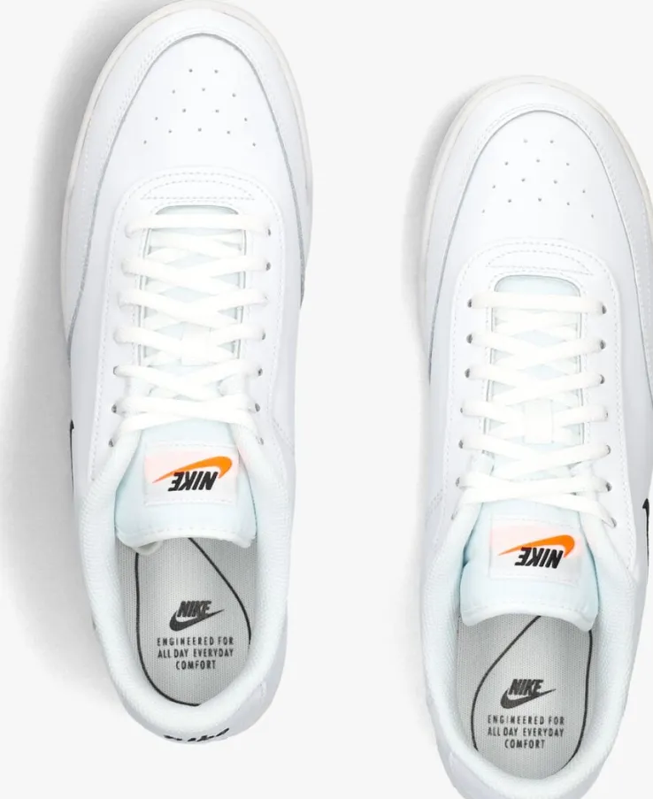 Een combinatie van de jaren ’80 basketbal sneaker en de hedendaagse sport, dat is deze lage sneaker COURT VINTAGEuit de collectie van het merk NIKE. De buitenkant is gemaakt van een combinatie van leer en lederlook en heeft diverse overlays en speelse perforaties op de neus. De gewatteerde tong van soepel textiel zorgt samen met de gevoerde enkelkraag en demesh voering met dempendvoetbed voor een comfortabel gevoel. Aan de zijkant van de schoen prijkt een zwart geborduurde NIKE-swoosh, de hiel heeft een geborduurde merkopdruk en de tong is gesierd met een textiel merklabel met zwarte kleur.De bijpassende witte rubberen kuipzool heeft stiksels rondom en een mooie strakke vormgeving en een gripvast profiel.