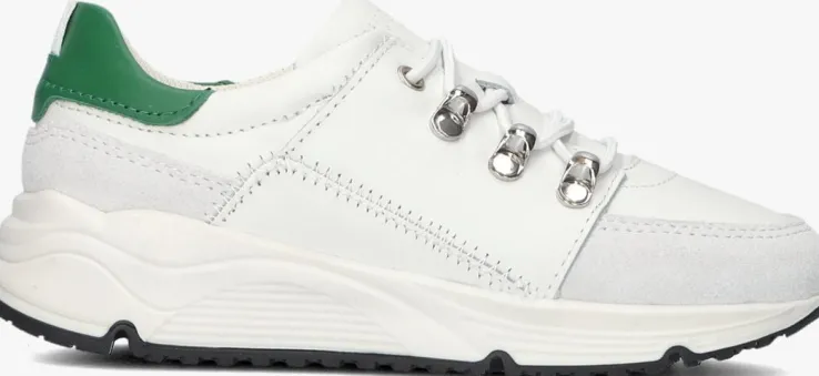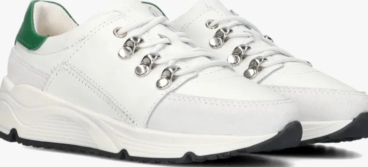 Met deze te gekke witte sneaker ROQUE ROYAL JR van het fashionmerk NUBIKK maakt je mannetje zeker de blits op het schoolplein. Dit model is ook uitgevoerd voor heren om ze te kunnen matchen met de man naar wie je kind het meeste op kijkt, namelijk zijn papa. Dit lichtgewicht model is uitgevoerd in hoogwaardig wit leer en heeft de kenmerkende NUBIKK- elementen zoals de toffe vetersluiting, de zigzagstiksels op de zijkant, het textiele aantreklusje op de hiel en het merkreliëf op de tong. De binnenzijde is gemaakt van leer in combinatie met zacht mesh textiel en het voetbed is uitneembaar. De schoen heeft een uniek uiterlijk dankzij de metallic veterhaken, de golvende lijnen in de rubberen tussenzool en de grijze leren inzet op de zijkant. De ‘blown-up’ zool van rubber heeft speelse vormen, is licht van gewicht en is voorzien van eengripvastprofiel om goed te kunnen rennen en spelen op deze sneakers. Draag deze sneaker lekker sportief onder een jeans of combineer ‘m met een chino.