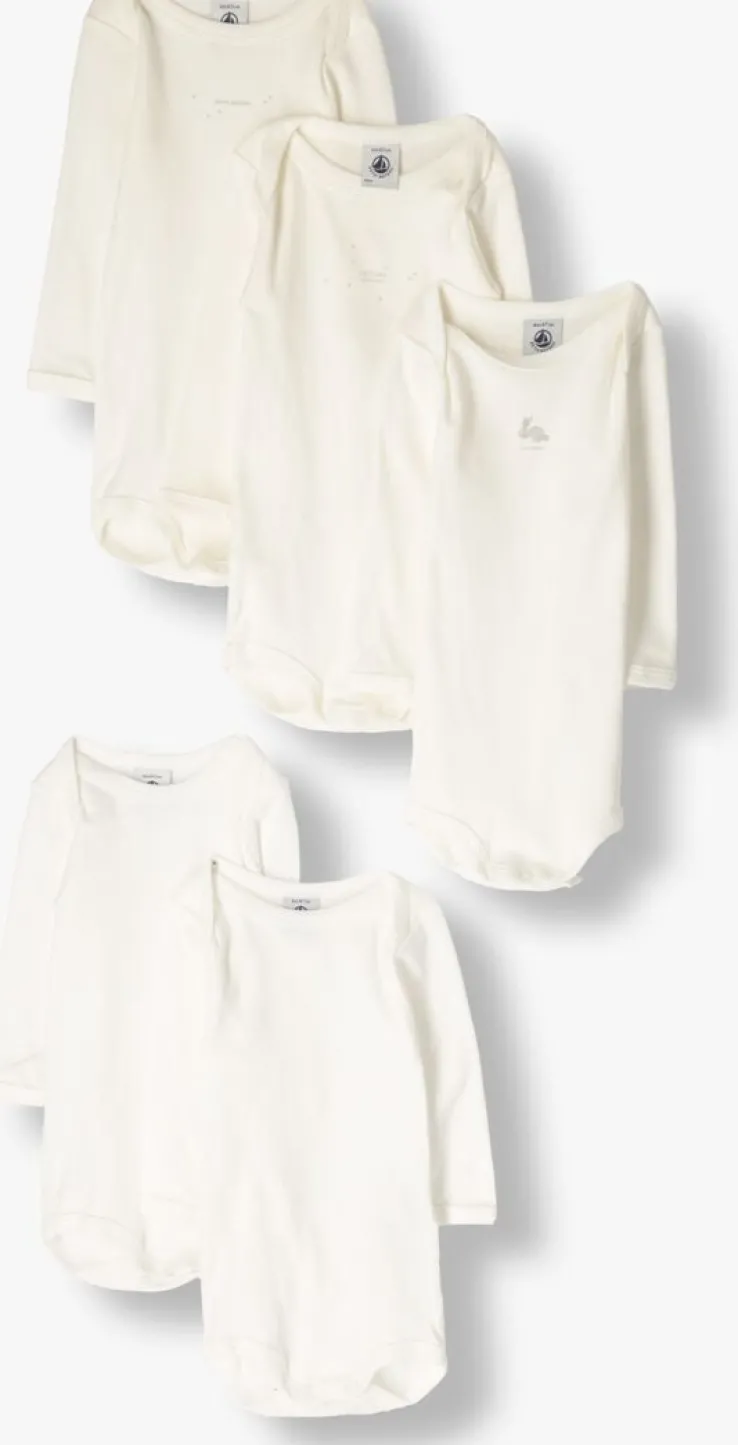 Kleed je kleintje stijlvol en comfortabel met deze set van 5 witte rompers van PETIT BATEAU. Perfect voor een dagje thuis spelen of een dutje doen. Deze rompers zijn gemaakt van zacht katoen, waardoor ze heerlijk aanvoelen op de babyhuid.