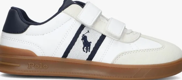 Stap stijlvol de wereld in met de HERITAGE COURT LLL EZ T-TOE sneakers van POLO RALPH LAUREN. Deze lage, witte sneakers met een leatherlook buitenkant zijn perfect voor jongens die houden van een sportieve en toch nette uitstraling. Opvallend zijn de donkerblauwe accenten en het beige suèdelook. Draag ze tijdens een potje voetbal met vrienden of een dagje uit in de stad. Combineer ze moeiteloos met een stoere jeans of een casual korte broek. De tijdloze witte kleur past bij elke outfit en zorgt voor een frisse, moderne look. Met deze sneakers aan je voeten ben je altijd klaar voor avontuur en plezier.