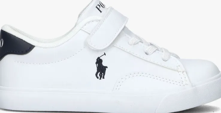 Deze wittelage sneaker THERON IV PSmet handige klittenbandsluiting in combinatie met elastische veter komt uit de collectie van het merk POLORALPH LAUREN. De buitenkant is gemaakt van wit lederlook en heeft een zwarte hielcap en afwerking aan de tong. De zijkant en hiel zijn gesierd met sierlijke stiksels een zwart geborduurd merklogo. Op de tong vind je een wit merkopdruk terug.De voering is gemaakt van mesh en heeft een vastvoetbed. De witte rubberen zool heeft een extra stootneus en een fijn maar gripvastprofiel onder de loopzool wat zorgt voor een goede grip en stabiliteit. Combineer ‘m onder een jeans en je bent ready to go!