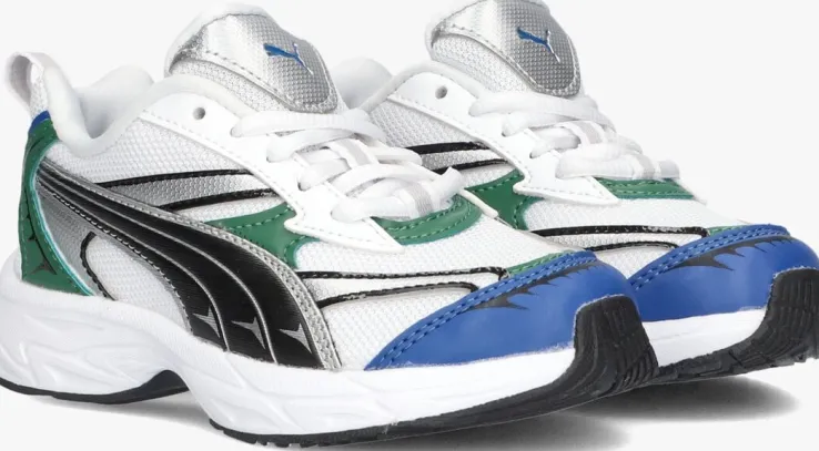 Stap in stijl met de MORPHIC TECHIE sneakers van PUMA. Deze lage sneakers zijn perfect voor jongens die op zoek zijn naar comfort en trendy looks. De buitenkant is gemaakt van geweven textiel met overlays van leatherlook in de kleur blauw, zwart, groen en zilver. De binnenkant is ook van textiel, waardoor ze heerlijk zacht aanvoelen. De zool, aantreklus en merkemblemen zorgen voor een sportieve uitstraling. De rubberen zool biedt grip en stabiliteit. Combineer deze sneakers met een stoere jeans en een casual t-shirt voor een coole en relaxte look. Perfect voor een dagje school of een middagje chillen met vrienden!