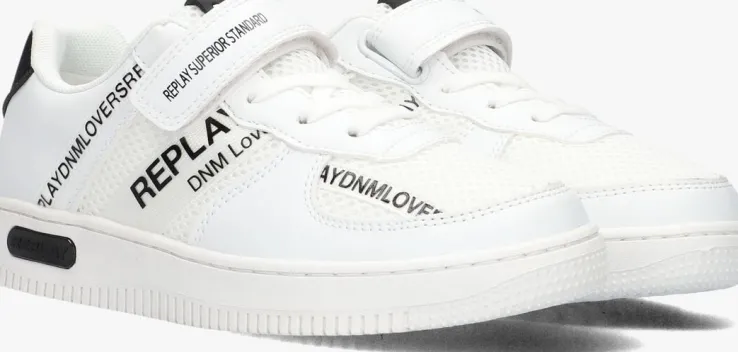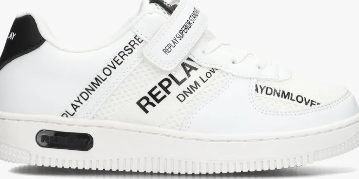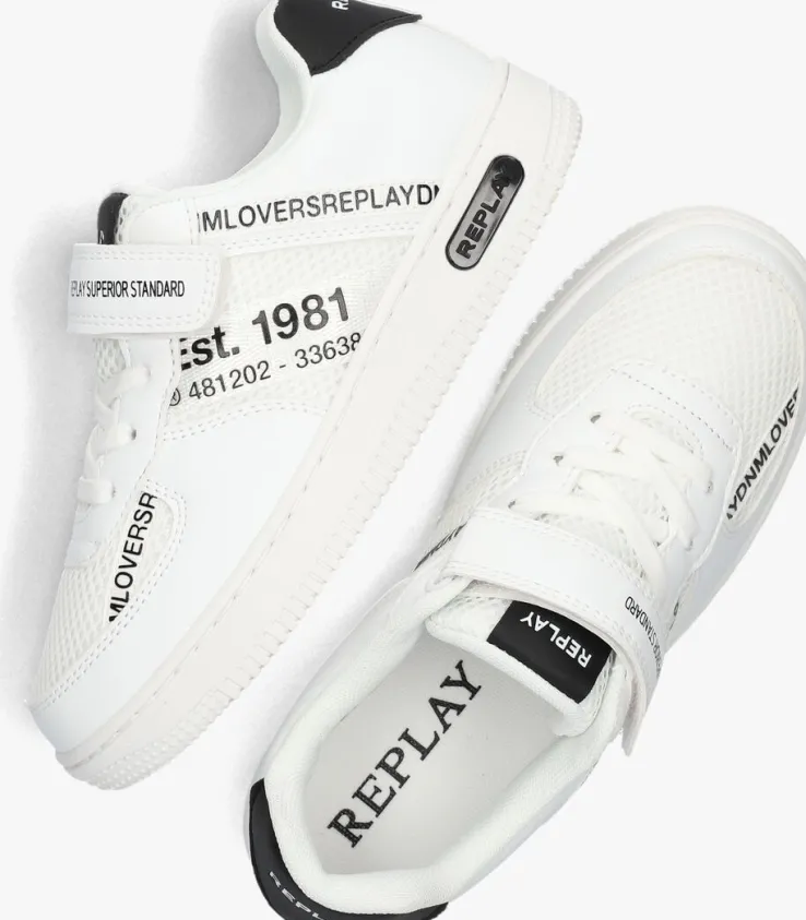 Stap in stijl met de EPIC JR 4 lage sneakers van REPLAY. Deze witte schoenen zijn perfect voor jongens die er cool en trendy uit willen zien. Het bovenwerk bestaat uit wit leatherlook in combinatie met mesh textiel. Opvallend zijn de zwarte accenten en de diverse merkemblemen. De zijkant is voorzien van textieltape met tekst en de rubberen zool is voorzien van een zwarte inzet. Combineer ze met een stoere jeans en een casual T-shirt voor een relaxte look. Of draag ze onder een chino en een net overhemd voor een meer geklede outfit. Of je nu naar school gaat of met vrienden afspreekt, met deze sneakers ben je altijd klaar voor elke activiteit.