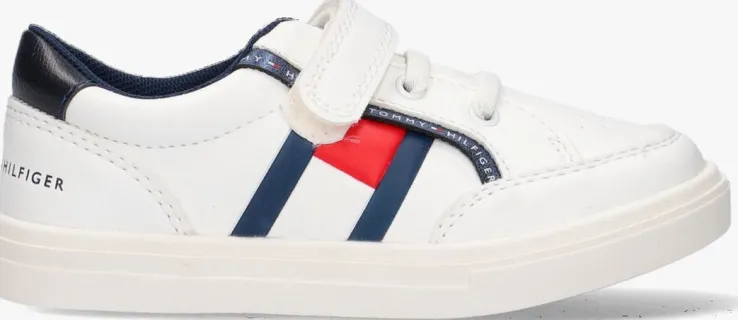 Ga jij voor een sportieve look? Ga dan voor deze lage sneaker 32038 uit de collectie van Tommy Hilfiger.De sneaker is aan de buitenzijde gemaakt van wit leatherlook met het welbekende rood-witte vlaglogo aan de zijkant van de schoen en een merkopdruk op de hiel. Aan- en uittrekkengaat heel eenvoudig dankzij de klittenbandsluiting in combinatie met de elastische veters. De rubberen zool heeft een sportief uiterlijk en een gripvast profiel. Het binnenwerk is gemaakt van donkerblauw mesh en heeft een vast voetbed.