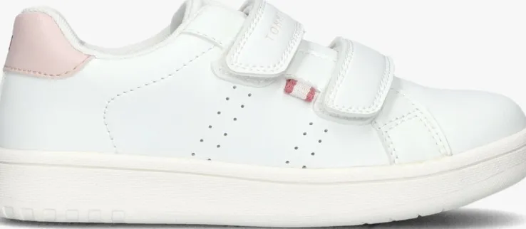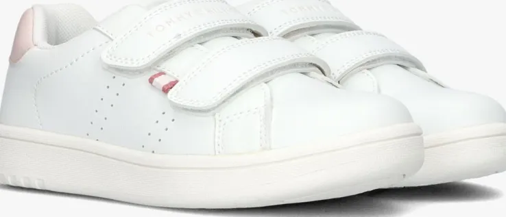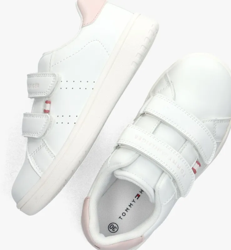 Deze lage sneakers van TOMMY HILFIGER zijn perfect voor meisjes die op zoek zijn naar stijl en comfort. Met hun frisse witte kleur passen ze bij elke outfit. De sneaker heeft op de zijkant kleine perforaties en op de hielcap van lichtroze met merklogo, voor een leuke twist. Met zijn handige klittenband sluiting, zijn de sneakers gemakkelijk aan en uit te trekken. Of je nu naar school gaat of een dagje uit met vriendinnen, deze sneakers zijn geschikt voor elke gelegenheid. Door zijn witte canvas binnen werk, zachte voetbed en rubberen loopzool, zijn deze sneakers comfortabel en fijn voor al je dagelijkse activiteiten. Combineer ze met een jeans en een casual T-shirt voor een trendy look. Of draag ze onder een zomerjurkje voor een speelse en sportieve uitstraling. Met deze sneakers ben je altijd klaar om te stralen!