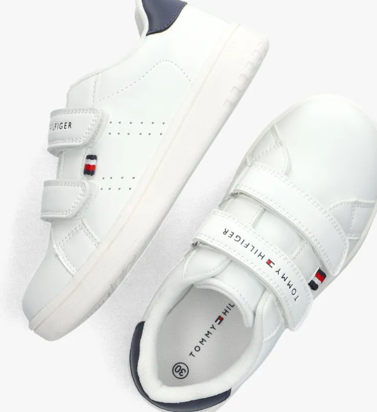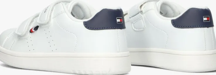 Stap in stijl met deze witte lage sneakers van TOMMY HILFIGER. Met de 33336 schoenen ben jij helemaal on-trend. Deze witte leatherlook sneakers heeft toffe perforaties, dubbele stikwerk, blauwe hielcap en merklogo op de hiel en zijkant. De sneakers zijn gemakkelijk aan te doen met de klittenband sluiting en voelen comfortabel aan, door de textiele binnenvoering. De rubberen zool zorgt voor een gripvaste ondergrond voor al je dagelijkse activiteiten. Combineer ze met een stoere jeans en een basic T-shirt voor een relaxte look. Of draag ze onder een chino en een nette blouse voor een meer geklede outfit. Met deze sneakers ben je klaar voor elke gelegenheid. Of je nu naar school gaat of een dagje uit met vrienden, met de sneakers maak jij altijd een fashion statement.