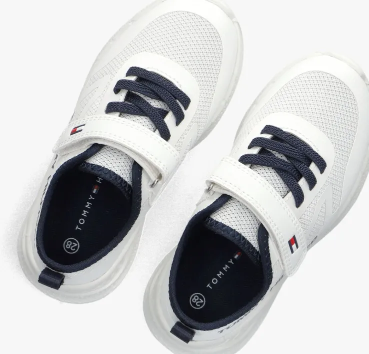 Ontdek de stijlvolle witte lage sneakers voor jongens, model 33868 van TOMMY HILFIGER. Deze sneakers met ronde neus en klittenbandsluiting bieden gemak en comfort. Dankzij het uitneembare voetbed en de polyester binnenkant blijven de voeten fris, zelfs na een dag vol avontuur. De robuuste rubberen zool zorgt voor grip tijdens het spelen in het park of een wandeling door de stad. Combineer deze sneakers moeiteloos met een stoere jeans of een casual korte broek voor een trendy look. Perfect voor elke jonge heer die houdt van comfort en stijl in één.