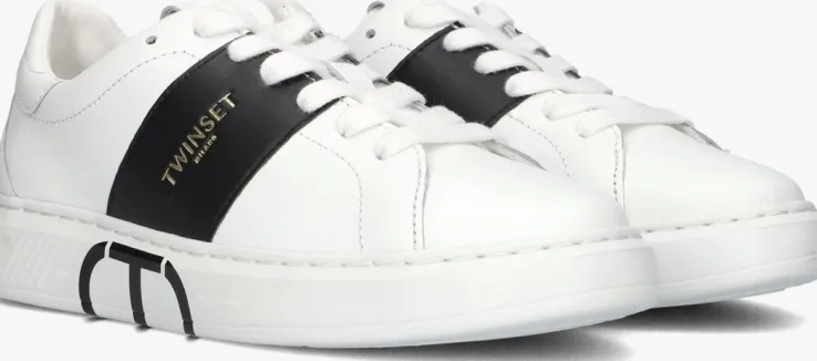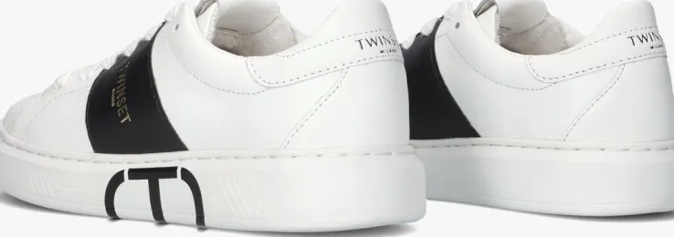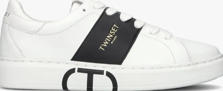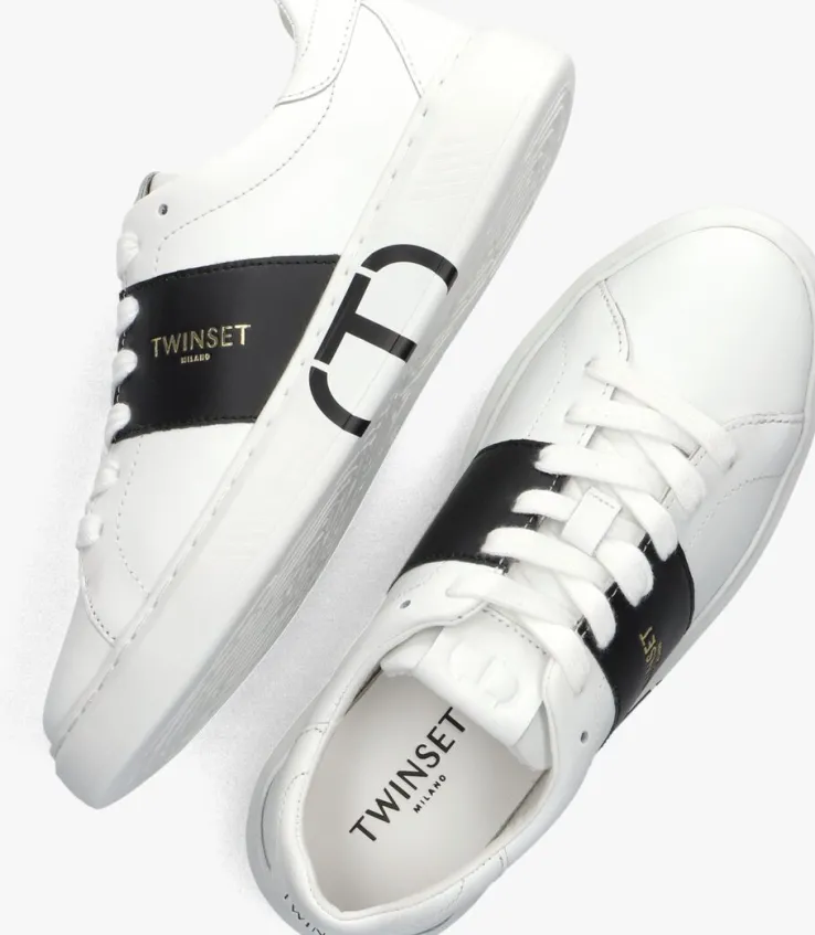 Met deze lage sneakers van TWINSET MILANO ben je helemaal klaar voor de zomer! De sneakers hebben een frisse witte kleur, perfect voor dames die houden van een stijlvolle en trendy look. Gemaakt van wit leer en binnenwerk van textiel in combinatie met leer, is deze sneaker echt een must voor je voeten. De zwarte panelen met goudkleurige merkreliëf maakt dit item uniek. Ook de tong en de 3 centimeter hoge zoolrand hebben het Twinset logo. Draag de sneakers met dagje shoppen in de stad of een gezellige lunch met vriendinnen. Combineer ze met een luchtige zomerjurk of een trendy jeans voor een fashionable outfit. Met deze sneakers maak je gegarandeerd een statement en loop je comfortabel de hele dag door. Voeg deze must-have sneakers toe aan je collectie en straal zelfvertrouwen uit!
