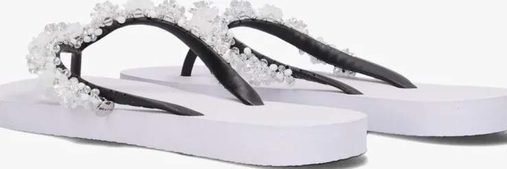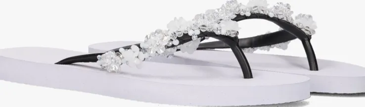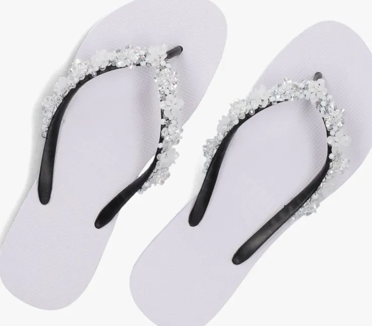 Deze witte PRECIOUS BLOOM WHITE slipper uit de collectie vanUzurii Luxury Footwear is een ware eyecatcher om al die vredige strandjes en drukke boulevards mee af te struinen! De producten van dit Nederlandse modemerk zijn stuk voor stuk handgemaakt met speciale technieken en grote toewijding. Deze luxe slipper is uitgevoerd in hoogwaardig rubber en heeftprachtige strass-stenen in de vorm van witte bloemenop de zwarte rubberen wreefband.De schoenendoos waar deze mooie slippers in worden geleverd heeft een luxe afwerking enaan ze binnenzijde voorzien van een spiegel. Na gebruik kanje ‘m dus gebruiken als handig make-up of sieradenopbergdoos.