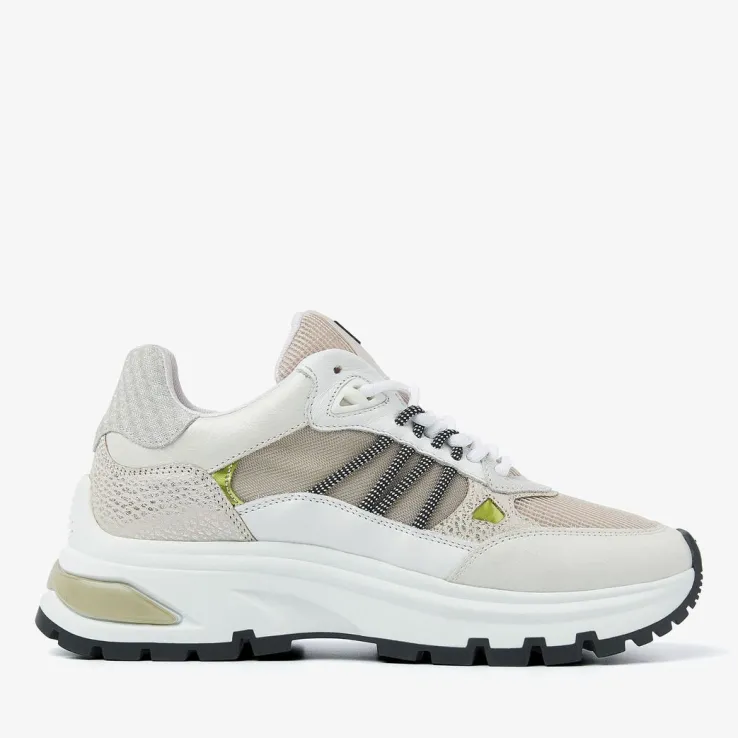 beige hub lage sneakers grid-w