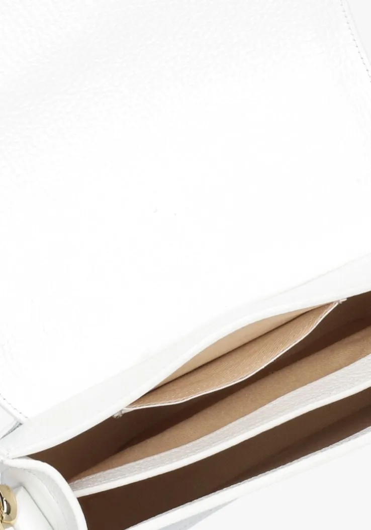 Deze witte schoudertas GLEN van VIA VAI is gemaakt van hoogwaardig leer met twee biezen aan de buitenzijde en heeft een magneetsluiting onder de klep. Door de twee ruime compartimenten van textiel biedt deze crossbody tas ruimte voor al jouw dagelijkse essentials. Bovendien is er ook gedacht aan een vakje voor drie pasjes. De leren, brede schouderband is afneembaar én verstelbaar. Combineer deze tas bij elke dagelijkse look! De afmetingen zijn: 22 x 7,5 x 16 centimeter (L x B x H, gemeten op het breedste punt)