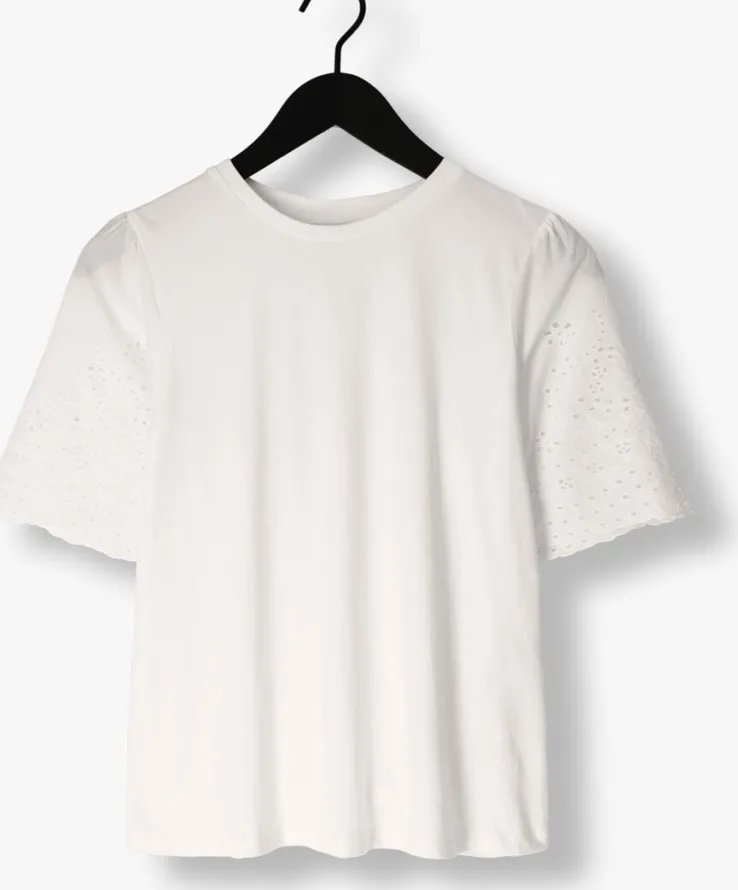 Met de YASLEX SS TOP W. EMB SLEEVES S van Y.A.S. ben jij helemaal on-trend! Dit witte T-shirt is gemaakt van biologisch katoen en heeft prachtige geborduurde mouwen voor een extra touch of style. Draag dit item tijdens een casual dagje uit met vriendinnen of tijdens een zomerse picknick in het park. Combineer het met een high waisted jeans en sneakers voor een trendy look.