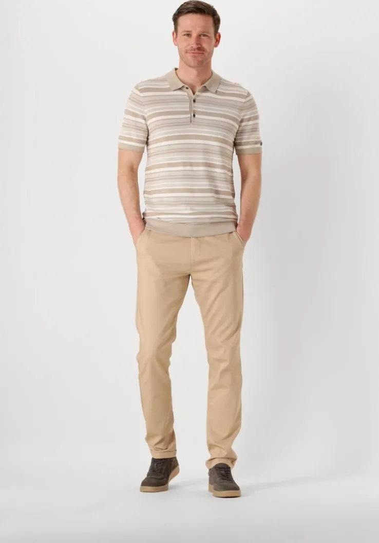 Ontdek de veelzijdigheid van de SHORT SLEEVE POLO COTTON MODAL in een stijlvolle zandkleur met subtiele streep. Deze polo van CAST IRON is perfect voor heren die comfort en stijl willen combineren. Dankzij de zachte katoen-modal mix voelt de polo heerlijk aan op de huid. Ideaal voor een ontspannen dag in het park of een casual lunch met vrienden. Combineer met een donkere jeans voor een tijdloze look of draag ‘m onder een lichte blazer voor een meer geklede uitstraling. Deze polo is een must-have voor elke garderobe en past bij elke gelegenheid.