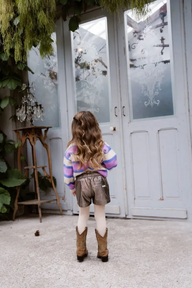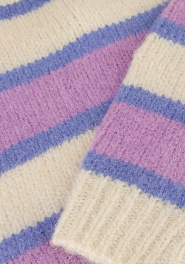 Voel je comfortabel en stijlvol met de KNITTED SWEAT FANCY STRIPE van DAILY7. Deze zandkleurige trui met paarse en blauwe is perfect voor meisjes die houden van een speelse en comfortabele look. Ideaal voor een middagje school of een gezellige dag weg. Combineer deze trui moeiteloos met een stoere jeans of een schattig rokje voor een complete outfit. Voeg een paar leuke sneakers of laarsjes toe en je bent klaar om de dag te beginnen.