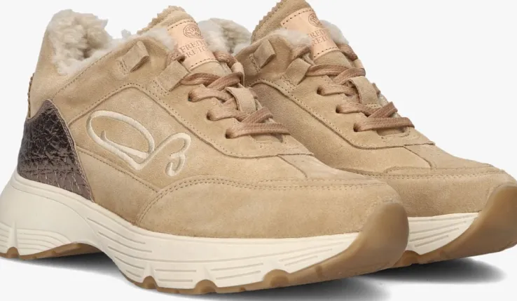 Stap stijlvol de deur uit met de MARIOLA SIGN TEDDY LINING sneakers. Deze zandkleurige lage sneakers van FRED DE LA BRETONIERE combineren comfort en elegantie. De buitenkant is van zandkleurig suède met zilverkleurig leer rond de hiel. De binnenkant is van zachte vacht, houden je voeten warm en knus. Dankzij de ronde neus en het uitneembare voetbed geniet je van optimaal draagcomfort. Perfect voor een dagje shoppen of een ontspannen wandeling in het park. Combineer ze met een casual jeans of een trendy rok voor een moeiteloze, chique look. De rubberen zool en vetersluiting zorgen voor een stevige pasvorm en extra grip.