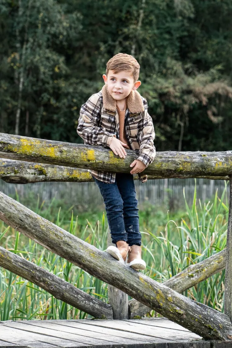 Maak kennis met de Q52882 van KOKO NOKO, het perfecte overshirt voor jongens. Dit zandkleurige overshirt met geruite print is ideaal voor een dagje uit in de stad of een avontuurlijke boswandeling. Combineer het met een stoere jeans en sneakers voor een casual look, of draag het over een T-shirt met een chino voor een nettere uitstraling.
