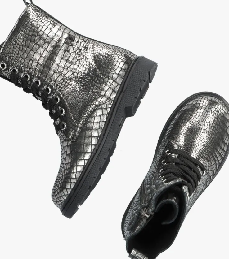 Deze stoere veterbootB009048 is van het Belgische merk APPLES & PEARS. De schoenen van dit merk worden met veel liefde en passie gemaakt,hebbeneen Italiaans design en worden volledig met de hand gemaakt in India. En dat zie je terug in de kwaliteit!De bootis uitgevoerd in zwart suède met een opvallende zilverkleurige kroko print finish. De voering en het uitneembare voetbed is gemaakt van leer in combinatie met textiel en de rubberen flexibele zool heeft een medium grof profiel en zorgt voor veel grip en stabiliteit. Je trekt ze gemakkelijk aan en uit door de ritssluiting aan de zijkant van de laars. Met elk paar Apples & Pears die je koopt ondersteun je een opvangtehuis voor wezen en verstotenen in India, dat voelt extra goed. Dit model heeft een smalle pasvorm.