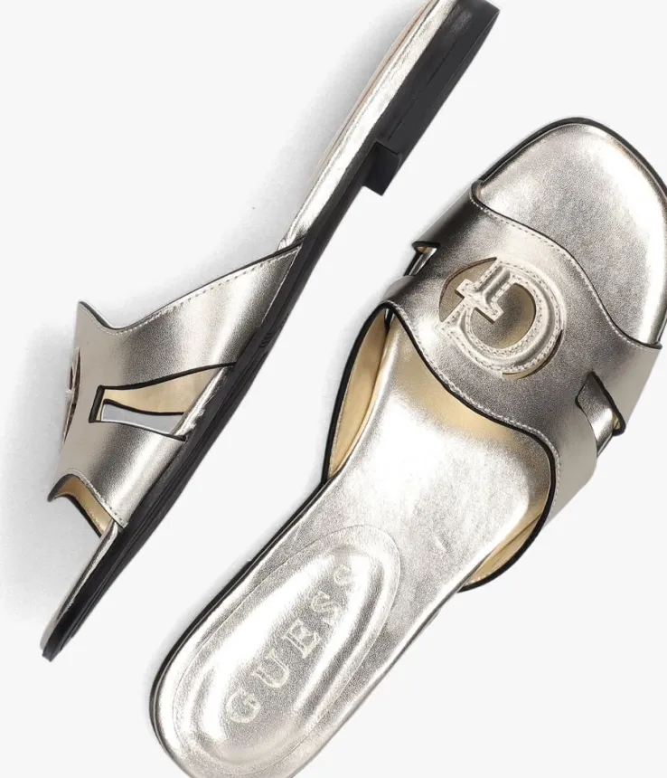 Stap in de zomerse vibe met de CIELLA slippers van GUESS! Deze zilverkleurige slippers van leer zijn perfect voor een dagje strand of een relaxte wandeling in de stad. De band op de voorvoet heeft een uitsnijding, zodat het G-logo zichtbaar is. Combineer ze met een luchtige zomerjurk of een trendy short en je bent helemaal klaar voor de warme dagen. De slippers zijn niet alleen stijlvol, maar ook super comfortabel. Laat je voeten stralen in deze eyecatchers van GUESS!