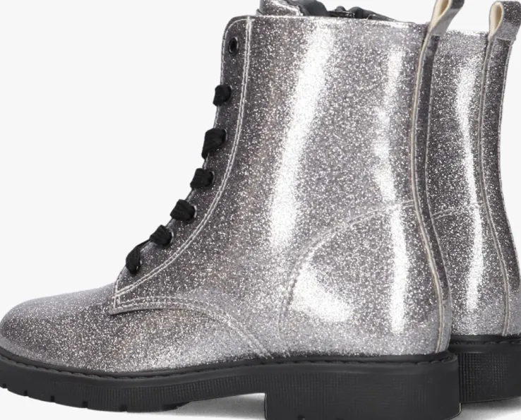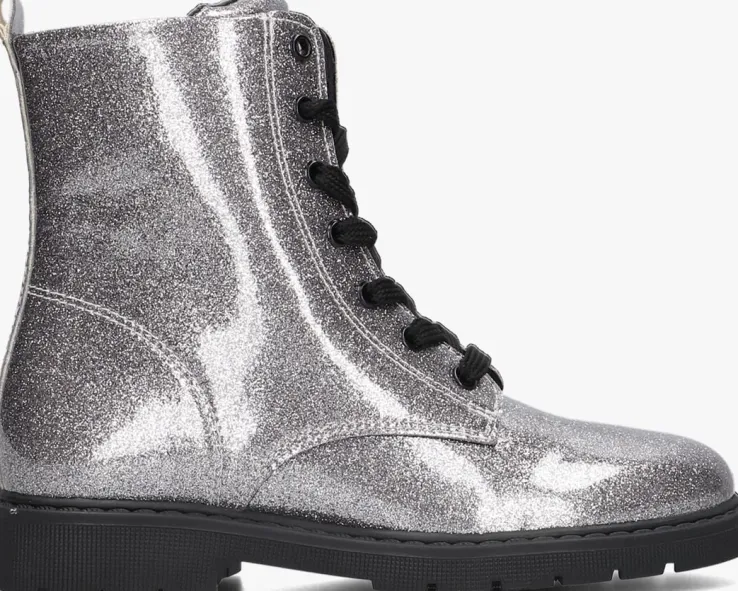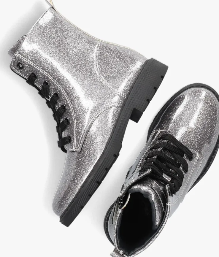 Stoer en girly tegelijk, dat is deze té leuke veterboot HELLA A in de kleur zilver van het merk KIPLING. De leatherlook buitenkant heeft een opvallende look door de all over glitters waardoor je met elke stap straalt. Verder heeft het laarsje nog meer leuke details, zoals het lak merklabel op de tong, het glitter aantreklusje op de schacht en het stiksel op de zoolrand. Aan- en uittrekken wordt kinderspel met de handige ritssluiting aan de binnenkant van de laars en met de vetersluiting kun je hem gemakkelijk passend maken. Het binnenwerk is leer en leatherlook gevoerd met een uitneembaar voetbed. De zool met diepe groeven ziet er niet alleen heel stoer uit, maar zorgt ook voor een goede grip tijdens het buitenspelen. Ga stralend op avontuur met deze te gekke glitterboots.