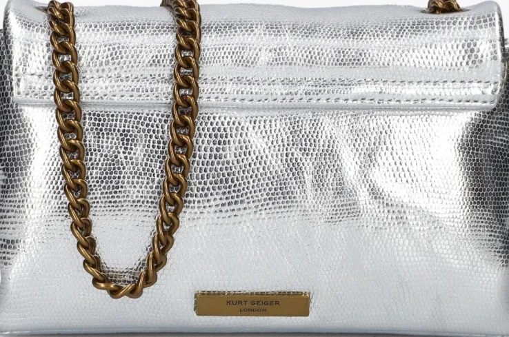 Voeg een vleugje glamour toe aan je outfit met de zilveren MD SOFT KENSINGTON STAR schoudertas van KURT GEIGER LONDON. Deze tas is perfect voor een avondje uit of een chique diner. De glanzende zilveren kleur maakt het een echte eyecatcher, terwijl het zachte materiaal zorgt voor een luxe uitstraling. Het ontwerp wordt extra bijzonder door de gouden sterren die de tas versieren, waardoor het een speelse maar verfijnde uitstraling krijgt. De mooie gouden binnenkant voegt een extra vleugje luxe toe, terwijl het ruime vak voldoende ruimte biedt voor je essentials, zodat je altijd stijlvol en georganiseerd blijft. Combineer deze tas met een elegante zwarte jurk of een stijlvolle blazer voor een verfijnde look. Een must-have accessoire voor dames die houden van een vleugje sprankeling en glamour in hun garderobe.