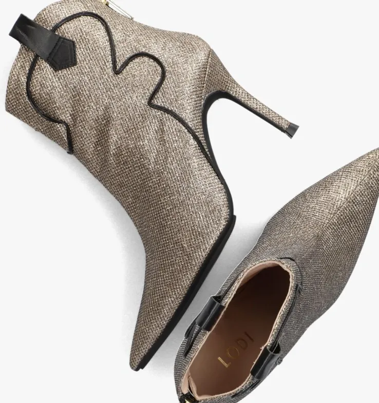 Deze supermooie, elegante enkellaarzen SECHO komen uit de collectie van het merk LODI. Dit model heeft een smalle vormgeving, een spitse neus, een naaldhak en is volledig gemaakt van glanzend, glitter textiel. De schacht is voorzien van een stoere zwarte belijning en handige aantreklussen, waarmee je in combinatie met de ristssluitng aan de achterkant dit model razendsnel aan en uit kunt trekken. Het binnenwerk is gemaakt van leer en heeft een comfortabel leren voetbed met een dempend voetbed en gelvulling voor extra veel comfort.De hakhoogte is zo’n 9,5 centimeter en heeft een loopzool vangeribbeld kunststof voor een goede grip en stabiliteit. Combineer ‘m bij al je favoriete items en straal je vrouwelijkheid uit!