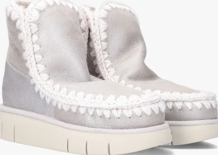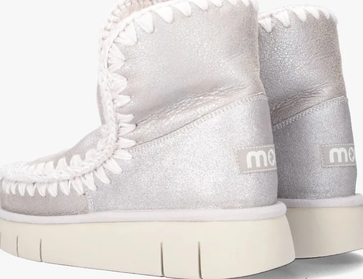Deze zachte, korte vachtlaarsESKIMO 18 BOUNCEkomtuit de collectie van het merk MOU. Deze winter essential is de perfecte mix tussen een warme eskimoboot en een comfortabele fashionsneaker. Hij is uitgevoerd in glanzend zilverkleurig suède en heeft grof gebreide stikselsop het voorpand en de schacht. De voering is gemaakt van heerlijk warm schapenvacht en heeft een vast voetbed. Op de hielbevindt zich een paars textiel merklabel en de schoen is voorzien van een duurzamerubberen sneakerzool met een goede grip voor ieder avontuur. Je pikt stiekem wat extra centimeters mee doordat de zool onder de voorvoet 3 centimeter hoog is en naar achteren toe op loopt tot bijna 4,5 centimeter. Laat die koude dagen maar komen want met deze laarsjes aan je voeten ben jij er helemaal klaar voor!