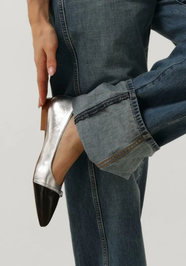 Stap in stijl met de VK1011 loafers van NOTRE-V. Deze loafers zijn gemaakt van zilver metallic leer, waardoor ze een echte eyecatcher zijn. De puntige neus is afgewerkt met zwart leer en heeft ter afwerking een mini zilverkleurig gespje. De binnenkant is ook van leer en de zool is van rubber voor extra comfort. Perfect voor een dagje uit met vriendinnen of een chique diner. Combineer ze met een zwarte skinny jeans en een witte blouse voor een trendy look. Deze loafers passen ook goed bij een feestelijke jurk voor een elegante touch.