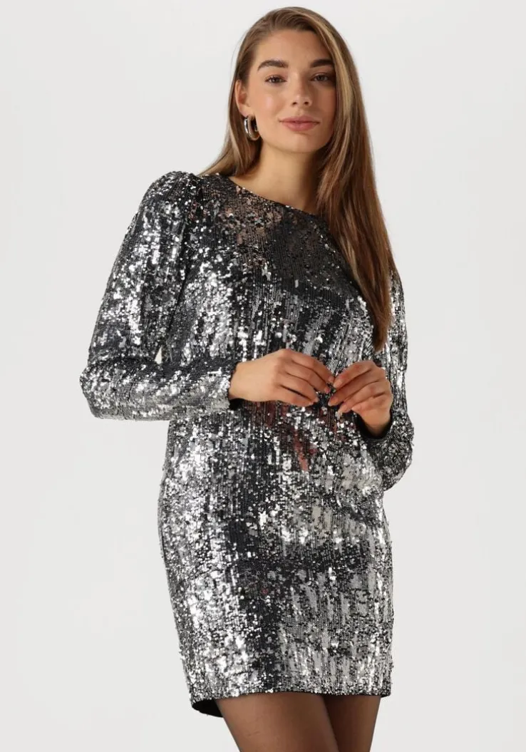 Stralend de nacht in met de SLFARI-COLYN LS SHORT SEQUINS mini jurk van SELECTED FEMME. Deze zilverkleurige partyjurk is perfect voor een avondje uit of een bruisend feestje. De glinsterende pailletten op de polyester buitenkant zorgen ervoor dat je de ster van de avond bent. Combineer met een paar elegante hakken en een stijlvolle clutch voor een complete look. Of draag ‘m met een leren jasje voor een stoere twist. Deze jurk is een must-have voor dames die houden van een beetje glamour en graag in de spotlight staan. Laat je innerlijke diva stralen!