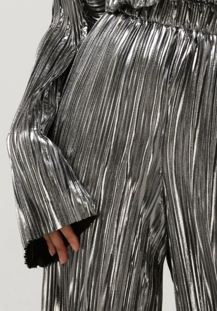 Met de SLFNALINE TINNI HW RELAXED PANT van SELECTED FEMME ben jij helemaal klaar voor het feestseizoen! Deze zilveren pantalon is perfect voor dames die willen stralen op een party. De relaxte pasvorm zorgt voor ultiem comfort, terwijl de hoge taille je figuur prachtig accentueert. Combineer deze broek met een feestelijke top en hoge hakken voor een elegante look. Of draag hem met een basic shirt en sneakers voor een trendy twist. Deze pantalon past goed bij een chique blouse of een glinsterende top. Laat je creativiteit de vrije loop en creëer jouw eigen stijl met deze eyecatcher!