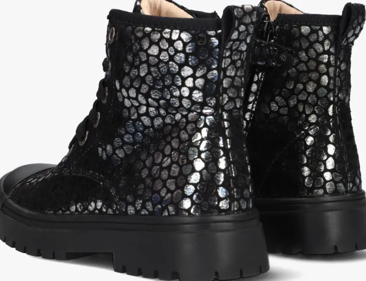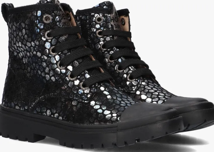 Ga op stap met deze stevige maar toch flexibele veterbootsSW23W001 van het merk SHOESME. De buitenkant is gemaakt van zwart suèdelook met een zilverkleurige metallic folie voor een trendy craquelé effect. Dit model heeft een stoere uitstraling dankzij de rubberen stootrand op de neus, de aantreklus op de schacht en natuurlijk het stiksel in de zoolrand. Het binnenwerk is leer gevoerd met een uitneembaar, dempend voetbed. Dankzij de ritssluiting ervaar je veel gemak tijdens het aan- en uittrekken en hoef je niet iedere keer de veters te strikken. De rubberen zool is flexibel maar biedt wel veel steun en het gripvaste profiel zorgt voor een goede grip.