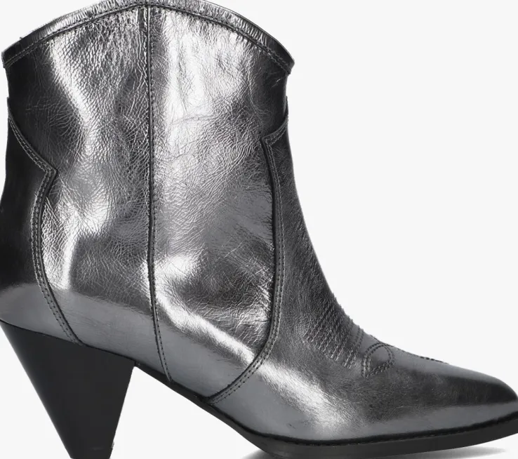 Ben je op zoek naar unieke laarsjes met een vrouwelijke touch? En wil je dat ze ook nog eens lekker comfortabel lopen? Dan is dit model een hele goede kandidaat om aan jouw schoenengarderobe toe te voegen! Deze zilverkleurige enkellaars CREAM met city western afwerking van het merk TORAL kenmerkt zich door de mooie accenten zoals de spitse neus en de kegelhak. Ook de vorm van de schacht is uniek, doordat hij afgerond is en hem een nette stoere geeft. Het bovenwerk bestaat uit hoogwaardig leer en dit model heeft een binnenvoering van leer en een vast voetbed met dempende schuimlaag. Extra tof is de brede zoolrand, het stikwerk op de voorvoet en de opgestikte patronen op de schacht. De laars blijft goed aan je voet zitten, door de elastishe band in de schoen. De zool is van rubber en heeft een fijn profiel wat samen met de kunststof haktip voor een goede grip zorgt. De hak is ruim 7 centimeter hoog en de schacht heeft een hoogte van bijna 15 centimeter. Combineer ‘m elegant met jouw lievelingsjurk!