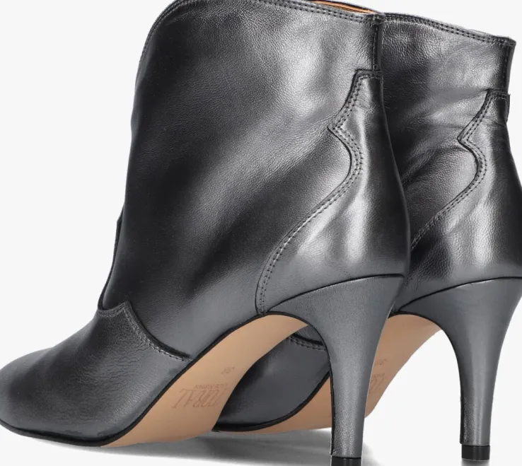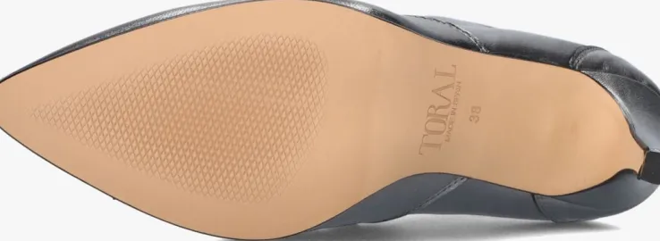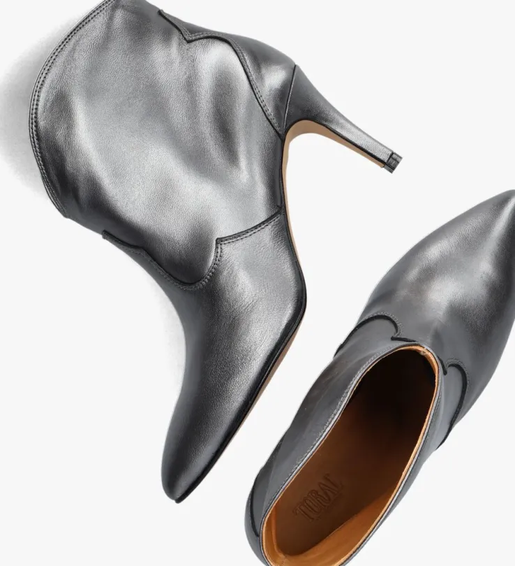 Ben je op zoek naar unieke laarsjes met een vrouwelijke touch? En wil je dat ze ook nog eens lekker comfortabel lopen? Dan is dit model een hele goede kandidaat om aan jouw schoenengarderobe toe te voegen! Deze zilverkleurige enkellaars van het merk TORAL kenmerkt zich door de mooie accenten zoals de spitse neus en de naaldhak. Ook de vorm van de schacht is uniek doordat hij aan de voorzijde iets lager is en hem een nette uitstraling geeft. Het bovenwerk bestaat uit hoogwaardig leer en dit model heeft een binnenvoering van leer en een vast voetbed met dempende schuimlaag. De zool is van leer en heeft een fijn profiel wat samen met de kunststof haktip voor een goede grip zorgt. De hak is ruim 8 centimeter hoog en de schacht heeft een hoogte van 12 centimeter. Combineer ‘m elegant met jouw lievelingsjurk!