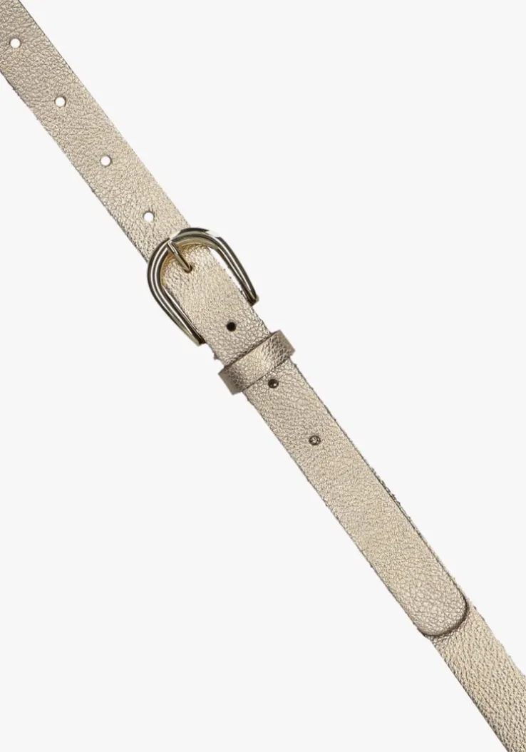 Upgrade je outfit met deze gouden riem van ELVY, model 20822. Gemaakt van leer aan de binnen- en buitenkant, voegt deze riem een vleugje luxe toe aan elke look. De riem is in de kleur beige, is 2 cm breed en heeft een goudkleurige gesp. Draag hem om je taille om je silhouet te accentueren of draag hem nonchalant om je heupen voor een trendy touch. Perfect te combineren met een jeans en een blouse voor een casual-chique uitstraling. Deze riem is een must-have accessoire voor elke moderne dame.