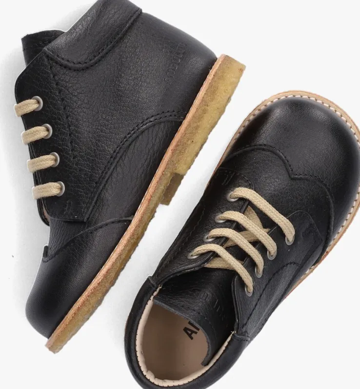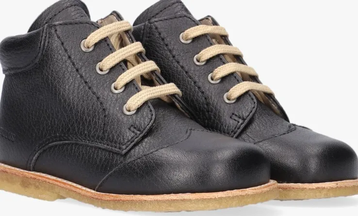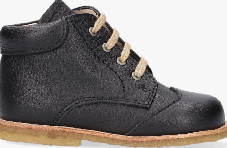 Het merk ANGULUS heeft zich al meer dan eens bewezen, het maakt namelijk al schoenen met de hand sinds 1904! Uiteraard altijd met de tijd meegegaan en nog altijd trendy zonder af te doen aan comfort. Want dat is hoe het allemaal begonnen is. Trends mogen er zijn maar ze moeten niet in de wegstaan voor comfort. Zeker niet bij groeiende kindervoetjes die volop in ontwikkeling zijn. Deze te leuke veter boots 9200-101 zijnuitgevoerd in zwartleer en heeft een mooie decoraties aan de neus en hiel. Zo heeft het schoentje een mooie vleugel op de neus en een extra randje rondom de enkel. De schoen heeft een gemakkelijke vetersluiting waardoor je hem gemakkelijk passend kunt maken aan de voeten van je kleintje. Het binnenwerk heeft een leren voering met een vast voetbed en voelt comfortabel aan. De rubberen crêpezool is flexibel en buigt fijn mee met de voet en zorgt tegelijkertijd voor een goede grip en stabiliteit. Aan alles zie je dat ook dit schoentje uit de collectie gemaakt is van de hoogste kwaliteit materialen en met grote passie en vakmanschap.