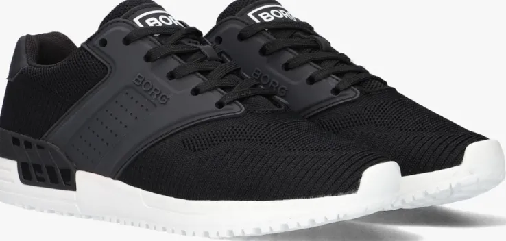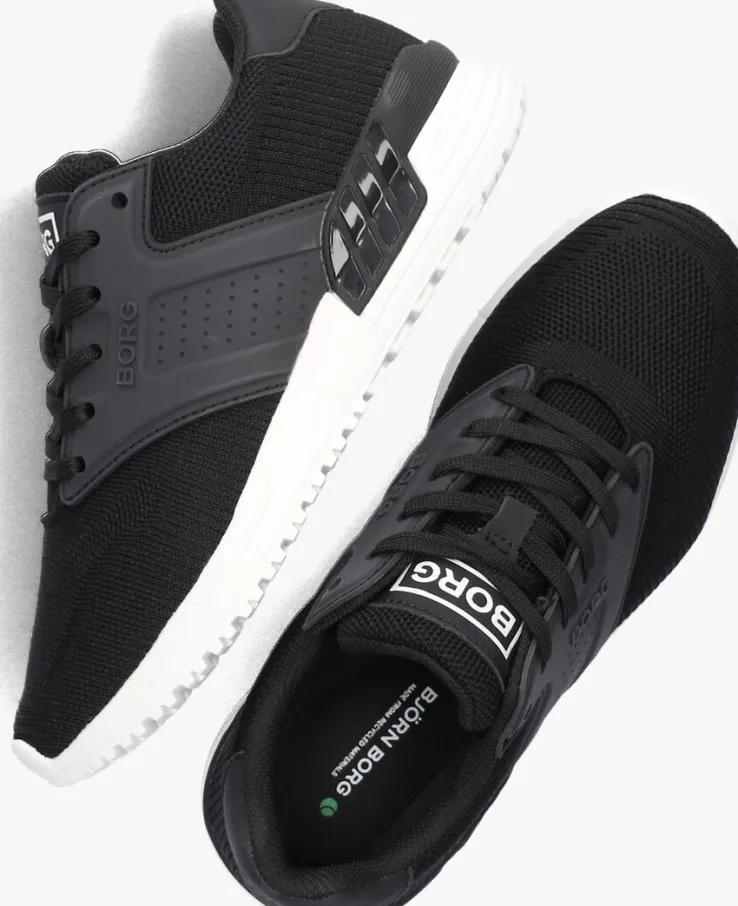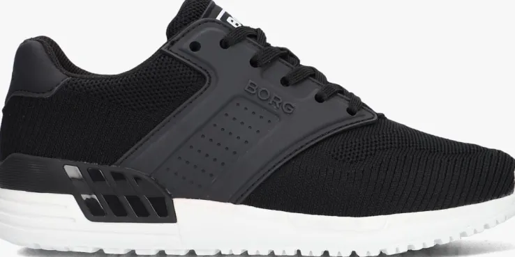 Deze zwarte lage sneaker R140 KNT Kuit de collectie van het merk BJORN BORG voelt heerlijk comfortabel aan dankzij het gebreide textiel buitenwerk en biedt tegelijkertijd onwijs veel steun aan voeten van sportieve en uitbundige jongens door de stevige zijpanelen van rubber en de rubberen hielstabilisator. Daardoor heeft hij tevens een unieke uitstraling gekregen. Opvallend zijn de verschillende merkopdrukken op de tong, zijkant en hiel. Het binnenwerk is gevoerd met mesh en heeft een uitneembaar voetbed. De witte rubberen zoolheeft een zwarte inzet voorextra steun en stabiliteit en is afgewerkt met een gripvast profiel.