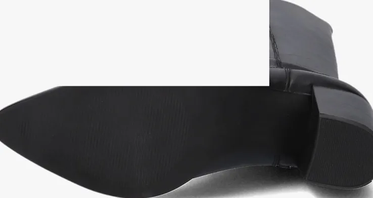 Stap stijlvol de wereld in met de AMERICANA-LOW hoge laarzen. Deze zwarte leren laarzen met een puntige neus en blokhak van 8 cm geven elke outfit een elegante touch. De leren binnenkant zorgt voor comfort, terwijl de rubberen zool grip biedt. Perfect voor een dagje shoppen of een avondje uit. Combineer met een strakke jeans of een stijlvolle rok voor een verfijnde look. De rits aan de zijkant maakt aan- en uittrekken eenvoudig. Deze laarzen zijn een must-have voor elke dame die houdt van een tijdloze en chique uitstraling.
