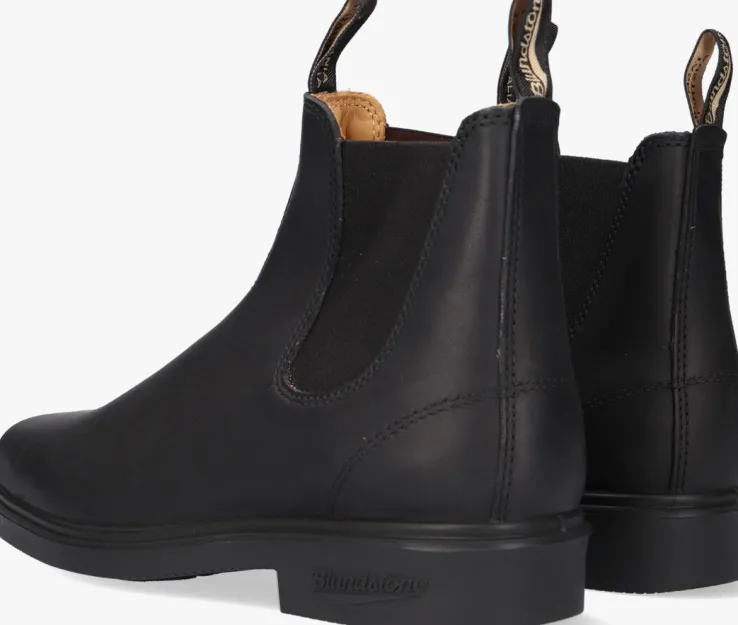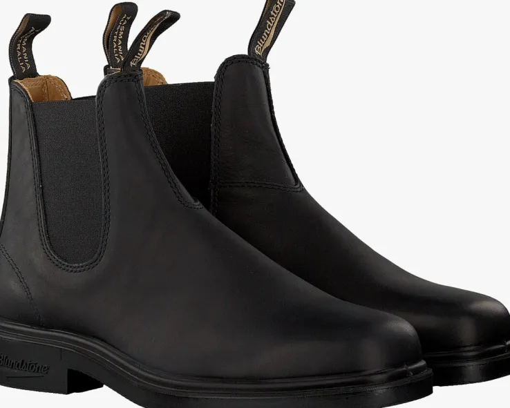 Waar je ook gaat,met de waterafstotende schoenen van het Australische merkBLUNDSTONE aan je voetenben je klaar voor ieder avontuur!Dit zijn namelijk niet zomaarschoenen, dit zijn BLUNDSTONES!En of je nu een coole stedentrip gaat maken of toe bent aan een uitdagende outdoor wandeling, deze schoenen zorgen voor droge en comfortabele voeten de hele dag door. Ze zijn geïnspireerd op de mooie, maar ruige ondergronden van Tasmanië inAustralië en hebben een stijlvol, robuust uiterlijk door de twee elastieken aan de zijkant, waardoor ze een ruime instap en een hoog loopcomfort bieden. Ze worden liefkozend ‘BLUNNIES’ genoemd en zijn te herkennen aan de ‘pull tags’ van textiel merklint op de voor-en achterkant. Dezezwarte chelseaboots DRESS BOOT HERENzijn gemaakt van premium leer en hebben eenvoering van leer en textiel met een uitneembaar voetbed van geperforeerd textiel. Dit voetbed is orthopedischverantwoord en heeft een hoge dempende en absorberende werking voor opmerkelijk comfort. Dit model is chic en stoer tegelijk door de vierkante neus en de verfijnde zool. De zolen zijn licht en flexibel waardoor jeer heerlijk op loopt en vermoeide, pijnlijke voeten tot het verleden behoren. Het vlakkenprofiel zorgt voor een perfecte grip en de hak met reliëf merkopdruk geeft je een klein beetje extra lengte. De strakke zool is circa 1centimeter dik, de hak heeft een hoogte van 3 centimeter en de schacht is 14centimeter hoog.Deze schoenen zijn gemaakt om lang mee te gaan, maar door ze goed te verzorgen blijven ze langer mooi en gaan ze nóg langer mee!