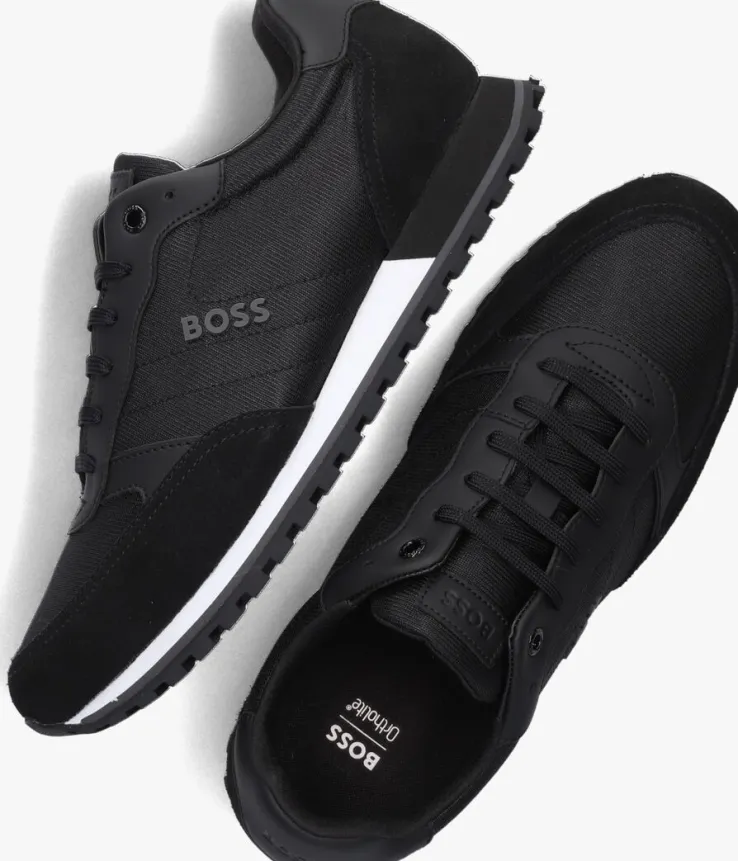 Deze iconische, zwarte sneakerPARKOUR-L RUNNvan het merk BOSS is gemaakt van zwart textiel in combinatie met leatherlook accenten. De schoen heeft een merkreliëf op de tong, emblemen langs de veterklep en een rubber merkembleem op de zijkant. Het binnenwerk is gemaakt van zacht textiel met een gevoerde enkelkraag en een uitneembaarvoetbed.De microrubberen zool is licht van gewicht en heeft een sportieve loopzool met grof profiel wat dit plaatje compleet maakt en zorgt voor onwijs veel grip bij iedere stap. Geef je favoriete outfitnet dat beetje extra dynamiek met deze toffe sneaker!