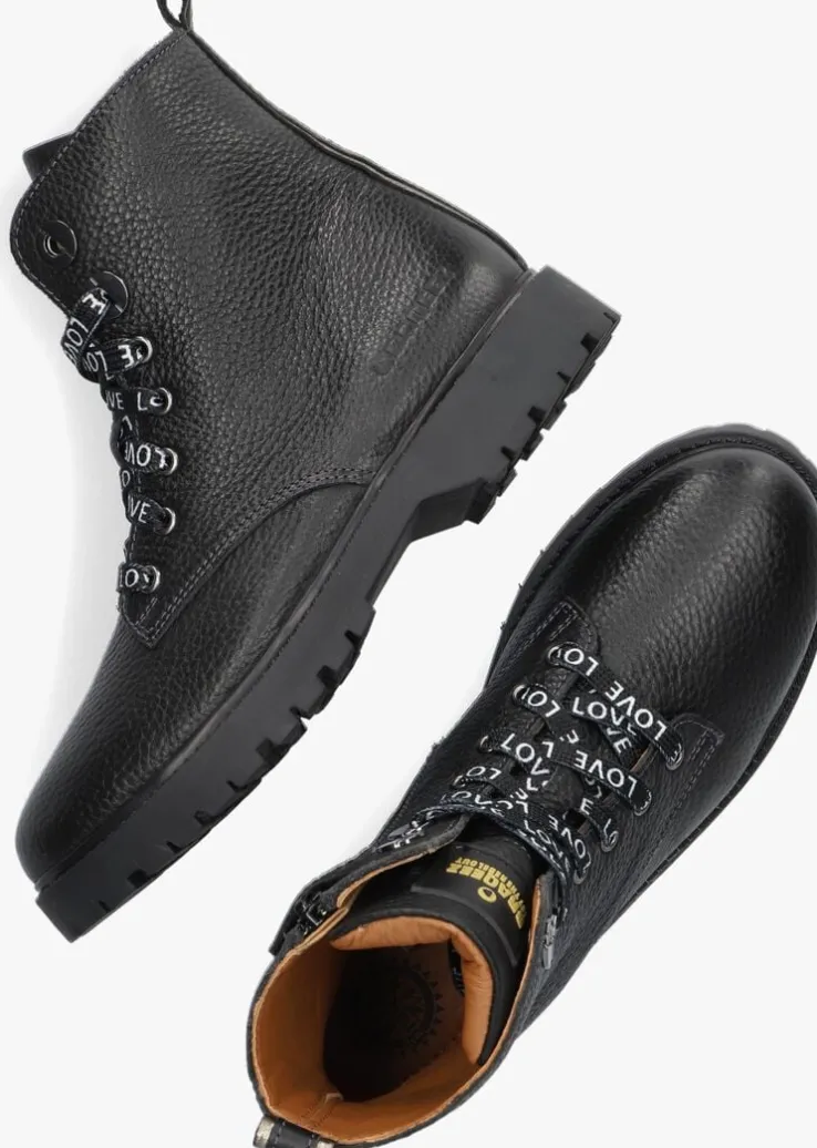 De BELLE BOOT van BRAQEEZ is dé perfecte veterboot voor stoere meiden. Met zijn zwarte kleur en chunky zool is deze schoen helemaal on-trend. Het uitneembare voetbed zorgt voor extra comfort, terwijl het leer aan de binnenkant zorgt voor een ademende voering. De rubberen zool zorgt voor goede grip en stabiliteit. Combineer deze veterboots met een stoere jeans en een oversized trui voor een trendy en comfortabele look. De zwarte veters zijn voorzien van een witte LOVE bedrukking. Of draag ze onder een jurkje voor een stoere twist. Met deze schoen ben je altijd klaar voor avontuur!