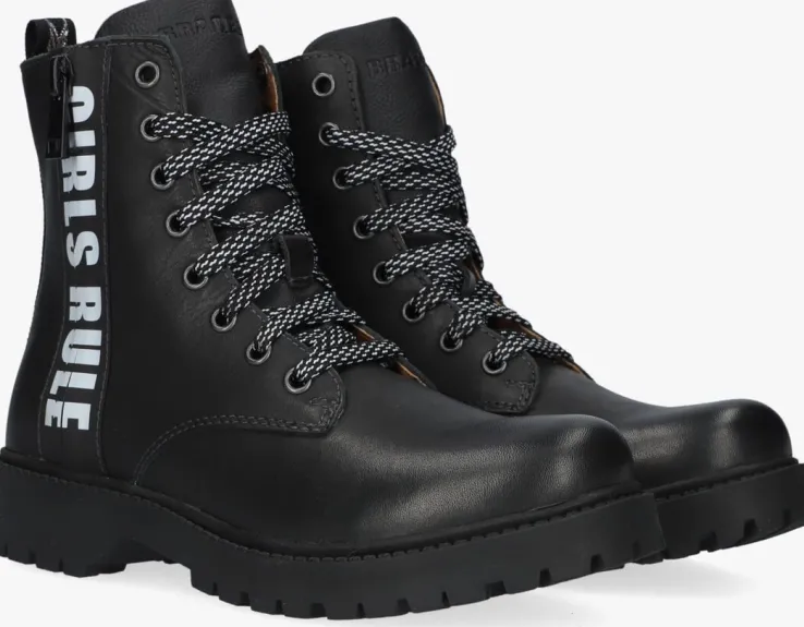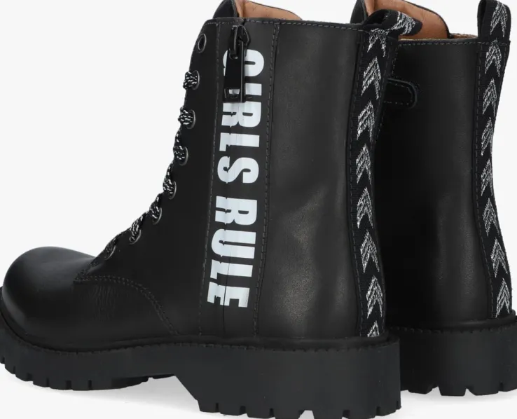 Als stoere meid heb je beslist een paar stoere veterboots nodig. Het merk BRAQEEZ weet precies welke ingrediënten zo’n stoere boot nodig heeft en dat zie je dan ook terug in dit model BOBBI BOOT. De buitenkant is gemaakt van zwartleer met een mooie glans en een sierrits die afgewerkt is met rubberen panelen en de tekst: ‘GIRLS RULE’ aan de buitenzijde van de boot. Door de verfijnde veterringen rijgt een platte zwarte met witte veter, maar je trekt ‘m nog gemakkelijker aan en uit dankzij de ritssluiting aan de binnenzijde van de laars. Het binnenwerk heeft een leren voering met een uitneembaar voetbed. De rubberen zool heeft een stoere look en een grof profiel.