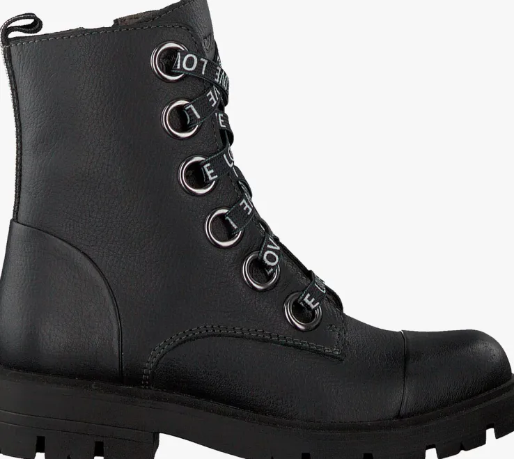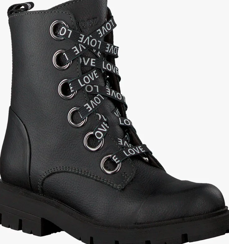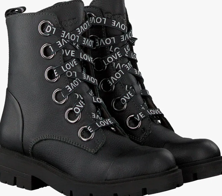 Als stoere meid heb je beslist een paar stoere veterboots nodig. Het merk BRAQEEZ weet precies welke ingrediënten zo’n stoere boot nodig heeft en dat zie je dan ook terug in dit modelGWEN GABRI.De buitenkant van de boot is uitgevoerd in zwart leer en heeft een dubbele neusnaad en zwart met zilver textiel hielband. De grote veterringen vallen lekker op en zijn voorzien van een platte veter met de tekst: ‘LOVE’. Dankzij de ritssluiting aan de binnenzijde van de boot trek je ‘m gemakkelijk aan en uit en hoef je niet iedere keer de veters te strikken. Het binnenwerk is leer gevoerd met een uitneembaar voetbed. De rubberen zool heeft een stoere look dankzij het grove profiel en is bijna 2 cm dik onder de voorvoet en loopt onder de hiel uit naar zo’n 3 cm dik.